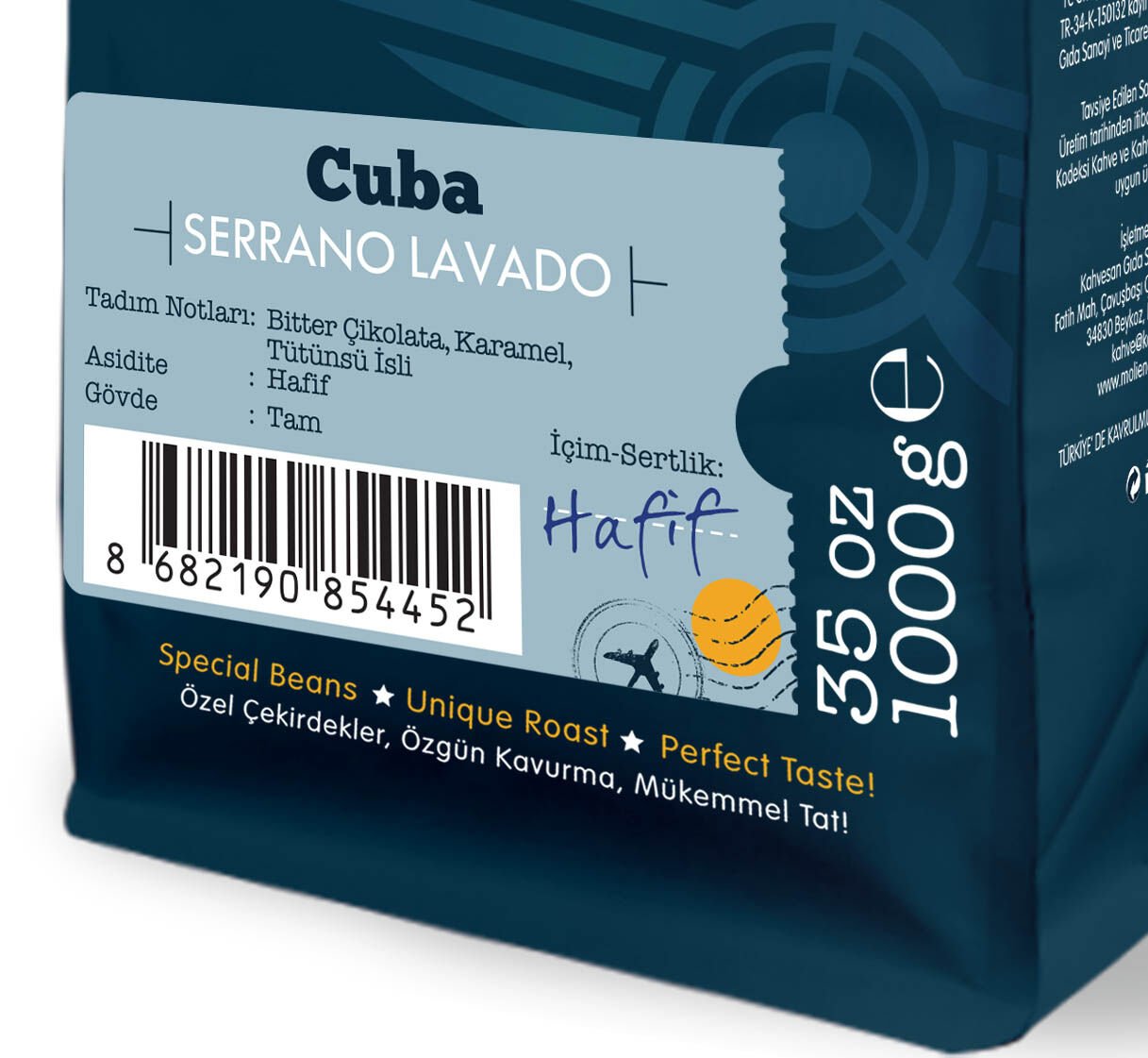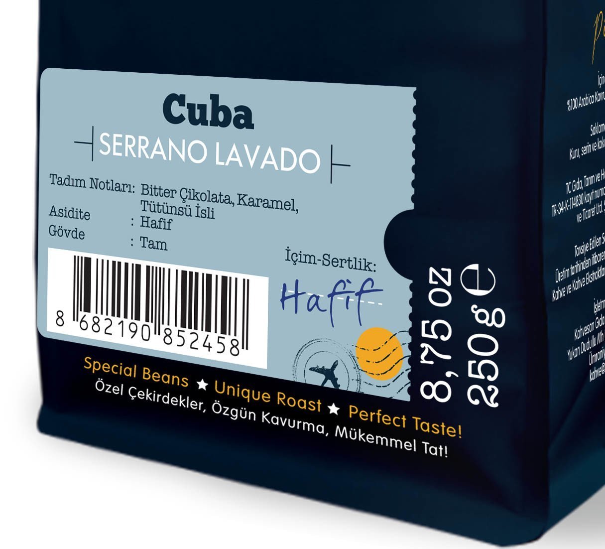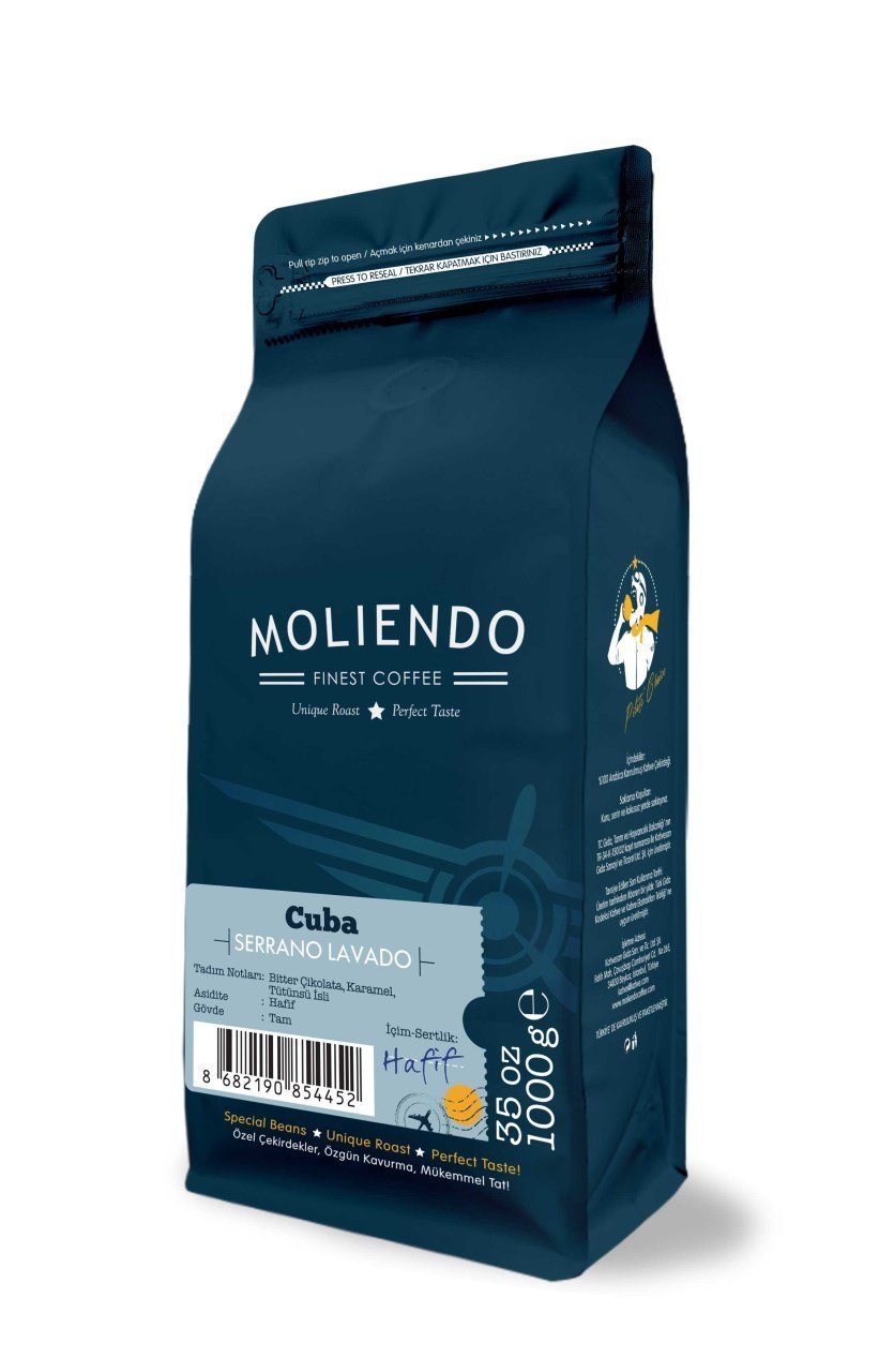 Moliendo Cuba Serrano Lavado, Karayip kahvelerinin tüm tipik özelliklerini bünyesinde barındırmaktadır. Ülkedeki Sierra Maestra Dağları kahve çiftlikleri için mükemmel bir ortam sunmaktadır. Japonya ve Fransa, bu ülkeden başlıca kahve ithal eden ülkeler arasındadır. Bunun dışında Almanya, Birleşik Krallık, Kanada ve Yeni Zellanda da Küba kahvesine ilgi gösteren ülkeler arasındadır. Cuba Serrano Lavado, Küba purolarını andıran isli tadı, hafif tatlı kakao notaları ve zengin gövdesinden gelen yoğun içimi ve damakta uzun süre kalan aromaya sahiptir. İçim sonrası kako tadına sahip olan Cuba Serrano Lavado, özel kahveler arasında yer almaktadır.