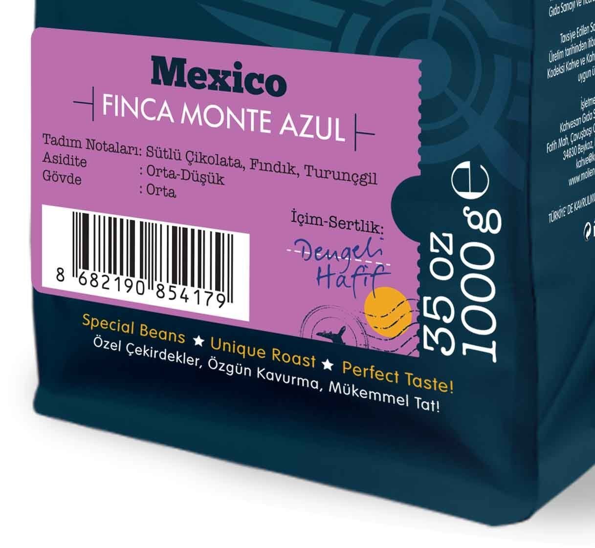 Moliendo Mexico Finca Monte Azul, koyu kavrulduğunda oldukça belirgin bir aroma ve derin bir tat sunabilir. Yumuşak asiditesi, baskın fındık ve çikolata notalarıyla ön plana çıkar. Daha koyu kavurma seçeneklerinde, fındık ve çikolata notalarınının yanı sıra ceviz notaları baskın hale gelmektedir. Türk damak tadına uygun bir kahvedir.