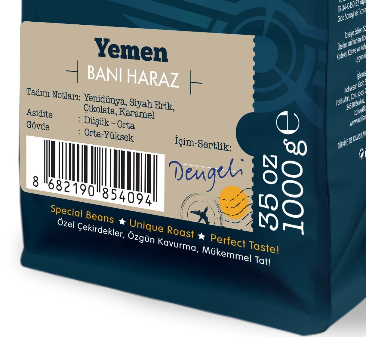 Kahve Habeşistan'da (Etiyopya) keşfedildikten hemen sonra, Yemenli Sufilerin uykusuz ibadet gecelerinde birincil içecekleri haline gelmiştir. Bugün ülkenin en ünlü limanının adı ile özdeşlemiş Mocha, espresso ve Türk Kahvesi gibi içecekler için tercih edilmektedir. Mocha'ya alternatif olarak Bani Haraz kahvesi baharatsı notalar açısında daha zengin ve özgündür. Moliendo Yemen Bani Haraz bitter çikolata, fındık ve siyah vişne aromalarında, dengeli asidite ve orta gövdeye sahip bir kahvedir.
